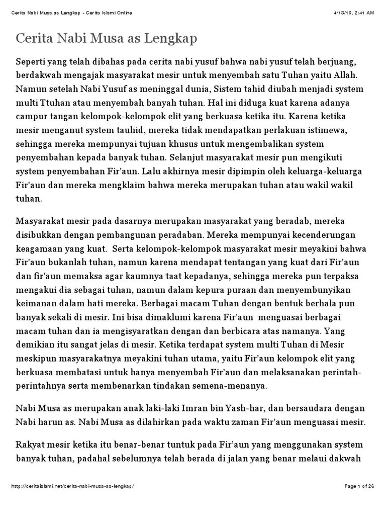 Nabi musa as diutus untuk menyadarkan raja firaun yang kejam teks bercerita kisah nabi. Itulah sebabnya salah satu perintah allah swt kepada nabi musa adalah untuk melawan raja yang berkuasa pada zaman itu, yaitu firaun.